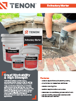 Tenon® Refractory Mortar is a specially engineered blend of specific cements and aggregates, giving the mortar unique heat-resistance and thermal characteristics for use in high-temperature applications such as inside fire pit rings, setting chimney clay flue liners, parging a smoke chimney chamber, and setting fire bricks. Passes ASTM C199 (Standard Test Method for Pier Test for Refractory Mortars) for mortar temperature limits to 2,550°F for a minimum of 6 hours. Available in 10 lb. pails (BOM #120913), 25 lb. pails (BOM #114050), 50 lb. bags (BOM #120924), and 50 lb. pails (BOM #121094).